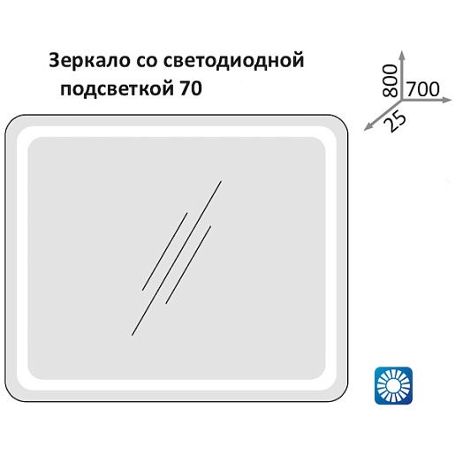 Комплектация: влагостойкое зеркальное полотно, LED подсветка.