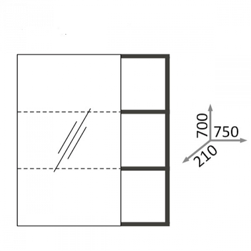 Описание: влагостойкое зеркальное полотно, шкафчик, открытые полки.