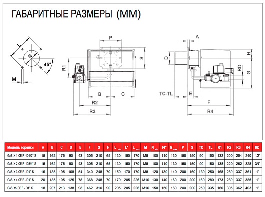 Газовая горелка GAS X 3 CE F + R. CE-CT D1"-S одноступенчатая
