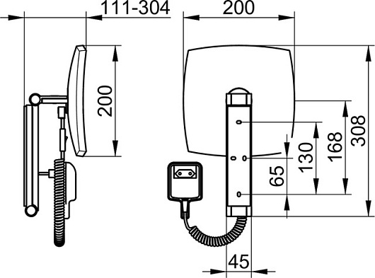 кабель (400 мм), настенная модель на кронштейне с шарниром,</li>