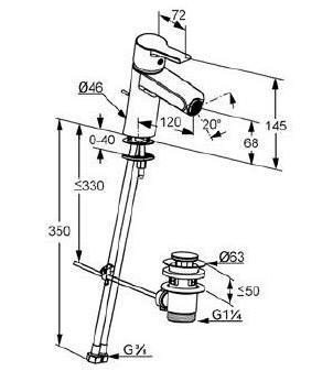 Высота излива, мм: