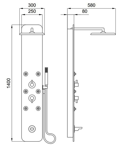 Душевая панель CITY 3F Размер: 1600х250х80 мм