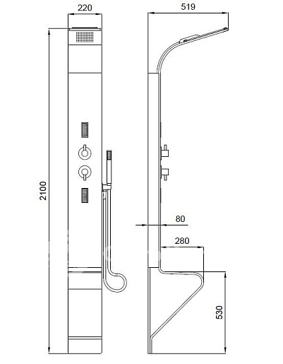 Душевая панель ZONDA 3F Размер: 2100х220х80 мм