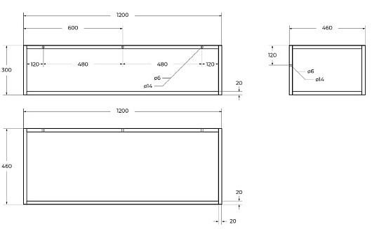 Размеры (ШxВxГ): 1200x300x460 мм.