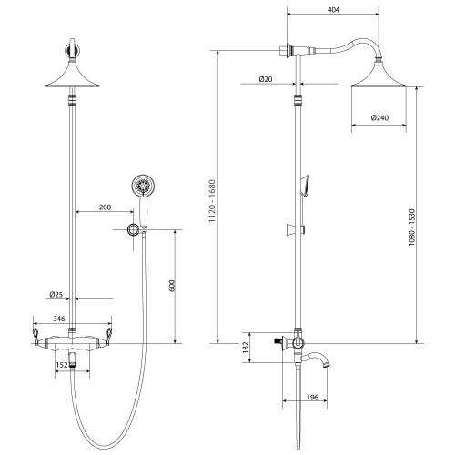 Смеситель, лейка, шланг, штанга, верхний душ, крепление