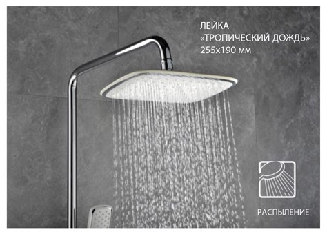 - верхняя поворотная душевая лейка «Тропический дождь» 255х190 мм.