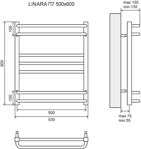 Полотенцесушитель водяной Linara П7 500x600 хром - арт. LM04607.