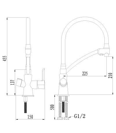 - Для крана с питьевой водой: кран-букса с керамическими пластинами (угол поворота – 90 градусов)