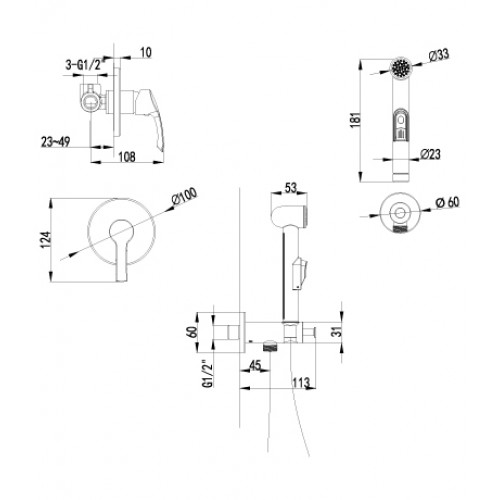 - Аксессуары в комплекте: лейка для биде с нажимным механизмом, шланг 1,5 м