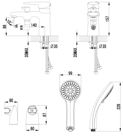 - в комплекте: шланг 2 м., настенное поворотное крепление, 5-функциональная лейка