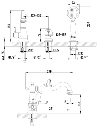 Смеситель на борт ванны: