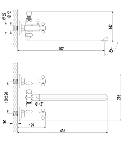 - Кран-буксы с керамическими пластинами (угол поворота 90°)