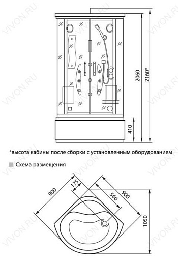 - размеры 900х900х2160,