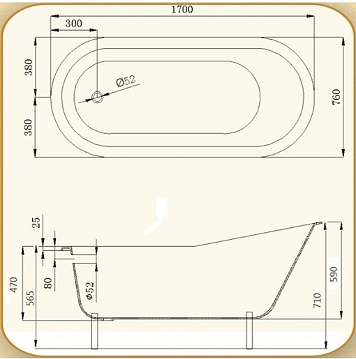 Magliezza Чугунная ванна Gracia Nero 170x76 (ножки бронза)