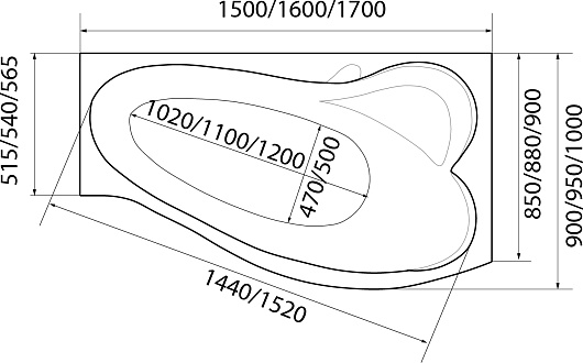 Акриловая ванна Marka One Gracia 170x100 R - арт. 01гр1710п.