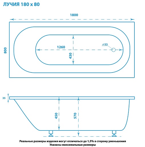 - Размеры ванны могут отличаться до 1,5% в сторону уменьшения.
