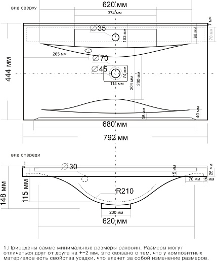 - Раковина из литьевого мрамора со слив-переливом.