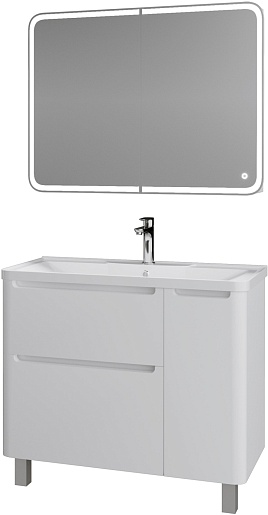 В комплекте: тумба, раковина, зеркальный шкаф, ножка (4 шт.).