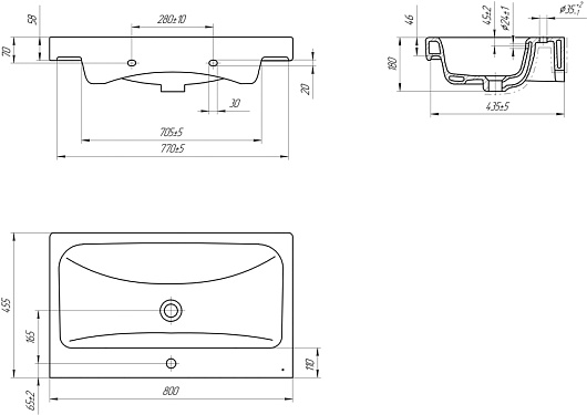 Тумба с раковиной Runo Афина 80 - арт. 00-00001170 (4656760151825) / 00-00001146 (4656760151870).