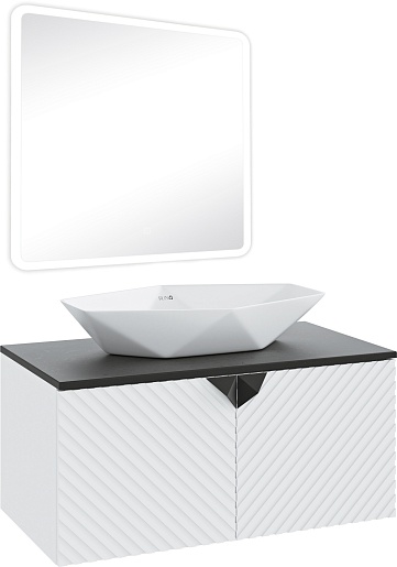 Runo Мебель для ванной Андорра 85 Poligono подвесная белая матовая/черная