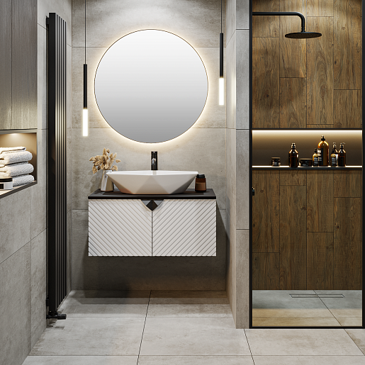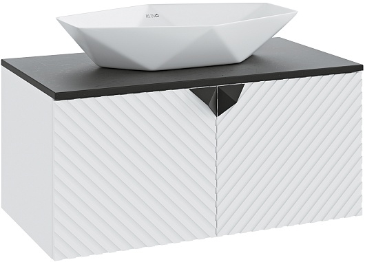 Тумба под раковину Андорра 85 подвесная белая матовая/черная