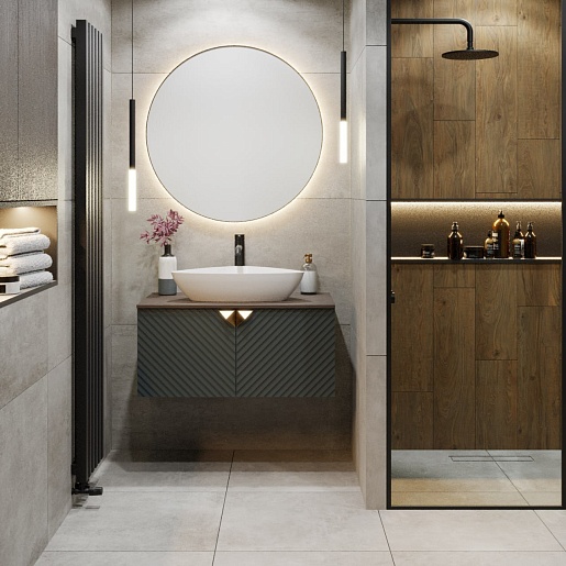 Тумба под раковину Андорра 85 подвесная зеленый графит/дуб коньячный