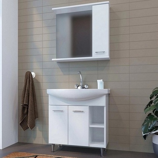 Комплектация: тумба, раковина, зеркальный шкаф, ножка (4 шт.).
