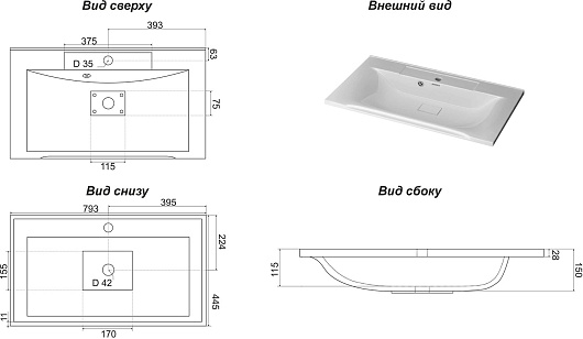 Комплектация: тумба, раковина, зеркальный шкаф, крепеж.