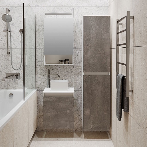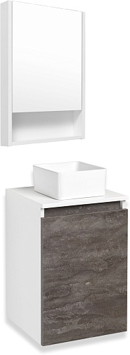 Тумба под раковину Бари 40 R подвесная железный камень/белая