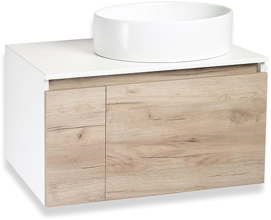 Тумба под раковину Бари 80 подвесная дуб крафт/белая