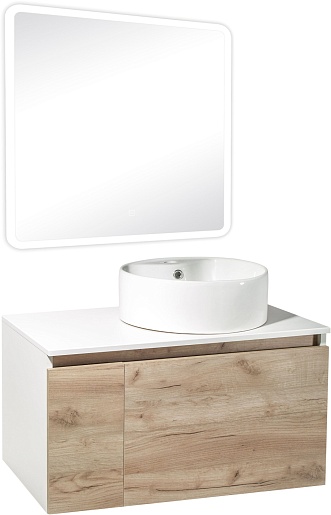 Runo Мебель для ванной Бари 80 Sole подвесная дуб крафт/белая