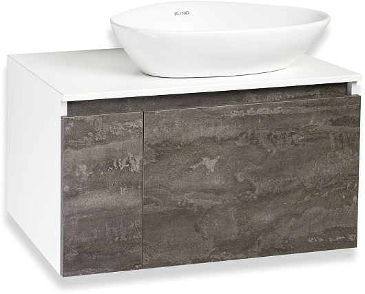 Тумба под раковину Бари 80 подвесная железный камень/белая