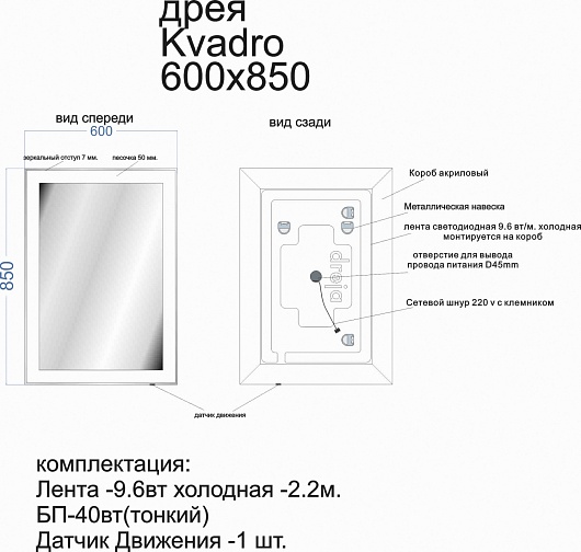 Зеркало Dreja Kvadro 60 - арт. 77.9011W.