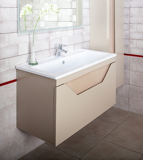 Подвесная тумба с раковиной Бриклаер Брайтон 100 глиняный серый - арт. 4627125415777 / 4660105230885.