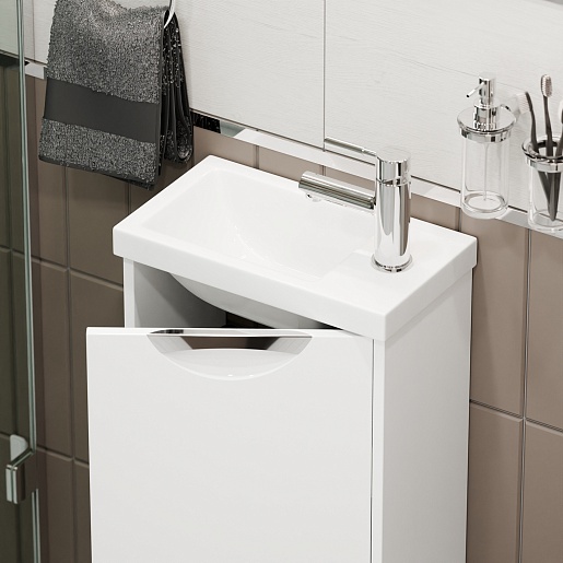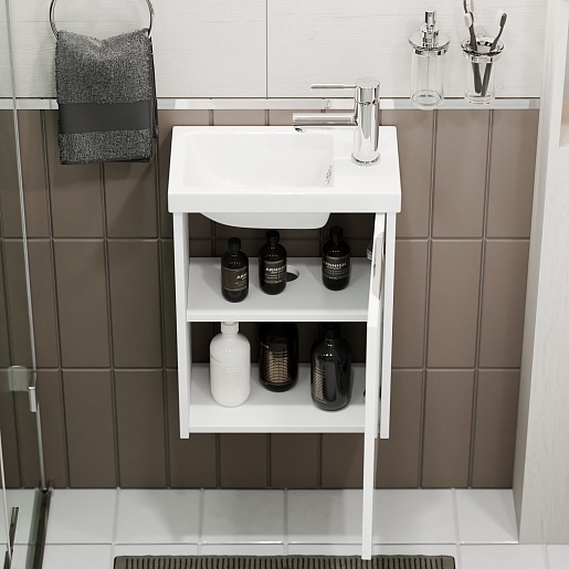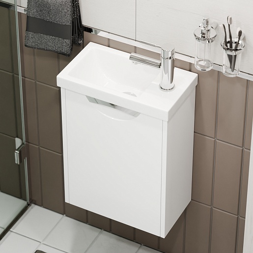 Тумба под раковину Бридж 40 R с ручкой Лира подвесная белая