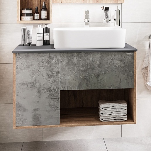 Подвесная тумба с раковиной Grossman Бруно 80 бетон/веллингтон - арт. 108008 / GR-3016.