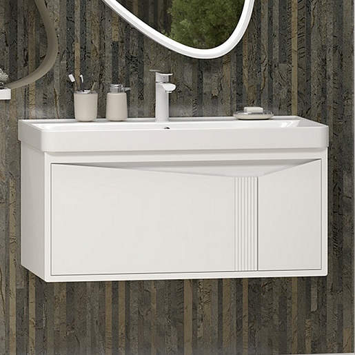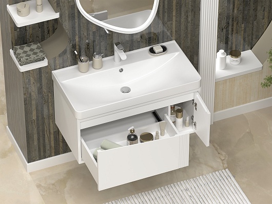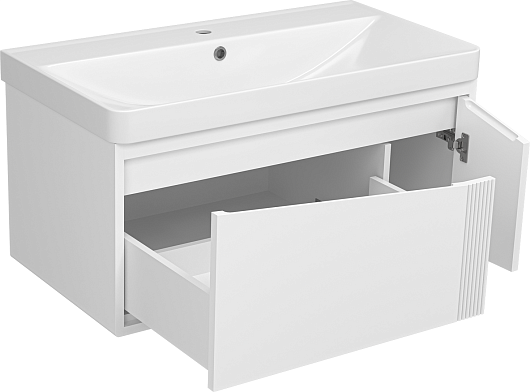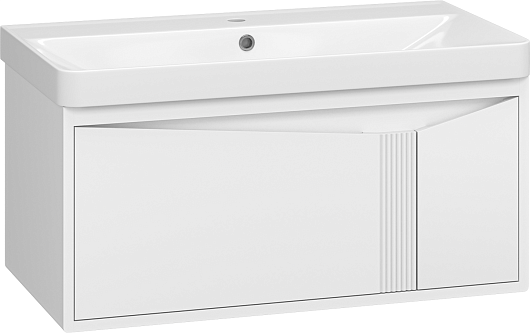 Подвесная тумба с раковиной Brevita Cascade 90 белая - арт. CAS-09090-011Я / RCW-141890WH.