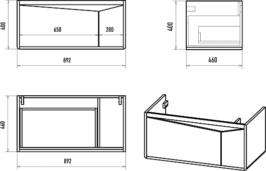 - 1 выдвижной ящик с направляющими скрытого монтажа.