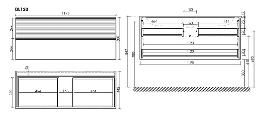 Тумба под раковину Delta 120 дуб красный/графит
