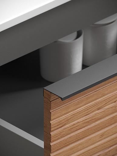 - Механизм доводчика обеспечивает плавное закрывание фасадов.