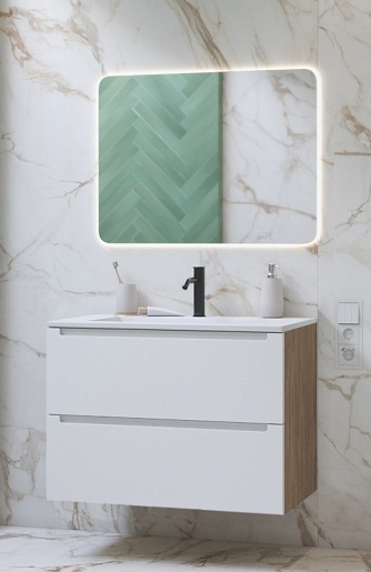 Зов Мебель для ванной Дион 80 подвесная матовая белая/дуб