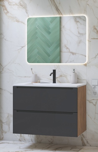 Зов Мебель для ванной Дион 80 подвесная матовый графит/дуб