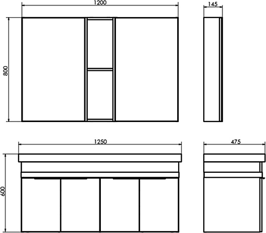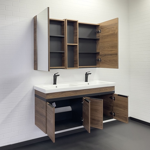 В комплекте: тумба, раковина, зеркальный шкаф (2 шт.), крепеж.