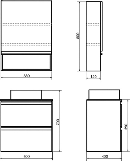 - Материал корпуса/фасада: ЛДСП / ЛДСП, зеркало.