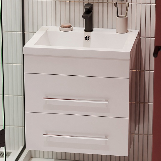 Водолей Мебель для ванной Элис 58 подвесная 2 ящика белая