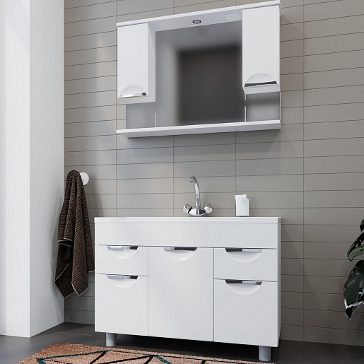 Комплектация: тумба, раковина, зеркальный шкаф, ножка (4 шт.).