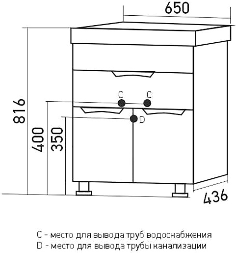 - 1 выдвижной ящик, 2 распашные дверцы.