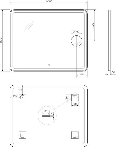 - Размер (ШxВxГ): 1000 x 800 x 30 мм.