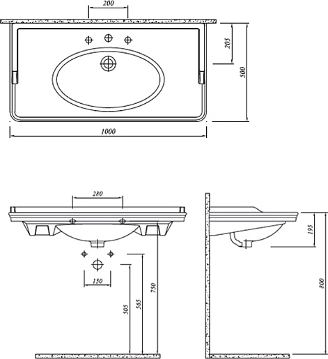 - Раковина с одним отверстием под смеситель, есть разметка под установку смесителя на три отверстия.