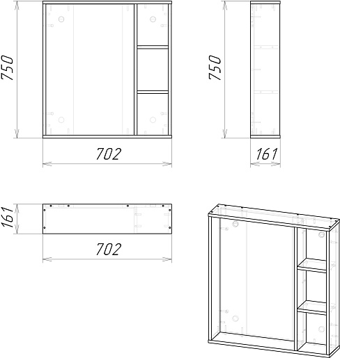- Размер (ШxВxГ): 702x750x161 мм.